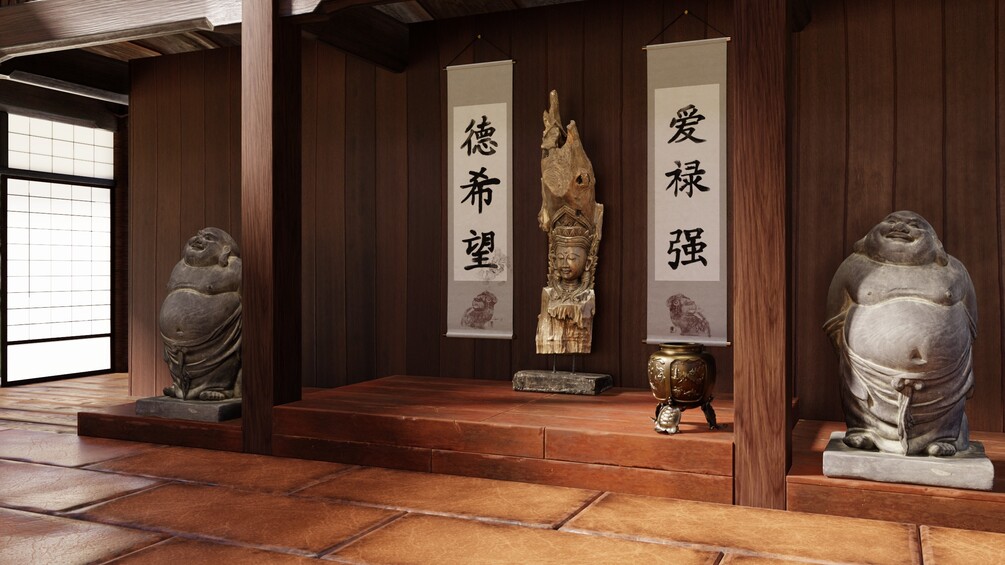 3D model of a Tree Carved Buddha. The object has a height of ~123,5 cm (48,6 inch).