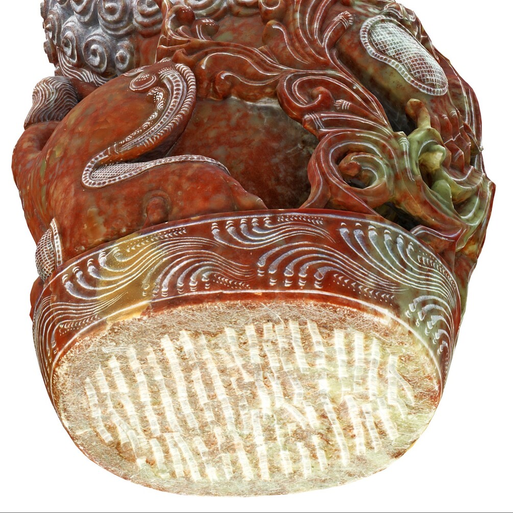 This statue is carved out of one solid piece of natural stone and has a height of approx 45 cm. (18 inch). The dragon’s pearl in it’s mouth is actually a loose piece and is pretty much perfectly round; impressive work by a team of 4 students and a master artisan.